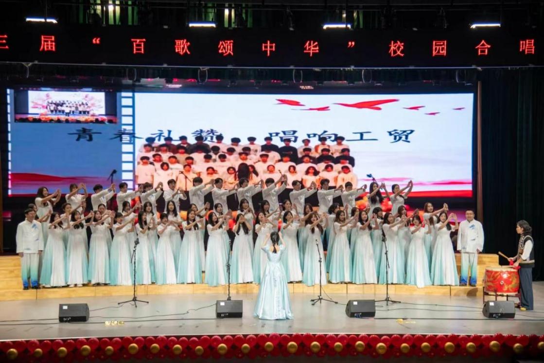 本次活动汇聚全校各二级学院合唱队伍及教职工队伍,各队伍紧扣活动主题精心选曲、刻苦排练,将青春活力与爱国深情融入歌声之中。比赛现场高潮迭起,各学院队伍轮番登场,以真挚的歌声礼赞中华。选曲上巧妙融合经典红歌、民族旋律与现代音乐元素,既有对革命岁月的深情回望,也有对新时代的热情赞颂,竞演精彩纷呈,充分展现了工贸学子多元的艺术素养与厚重的家国情怀。