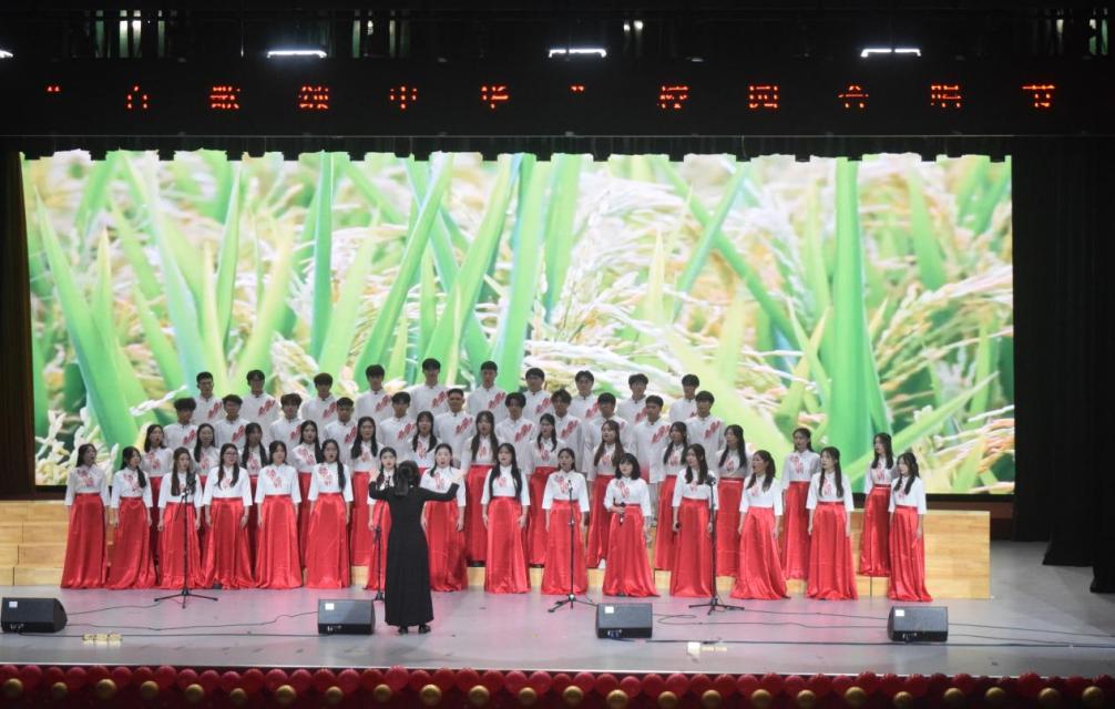 作为学校校园文化品牌活动之一,“百歌颂中华”合唱节已连续举办多年,成为传承红色基因、涵养师生家国情怀的重要载体,更是展现工贸校园文化活力与育人成果的生动窗口。合唱节在激昂的开场致辞中拉开帷幕,主持人带领观众重温百年奋斗征程,抒发工贸学子听党话、跟党走的坚定信念。