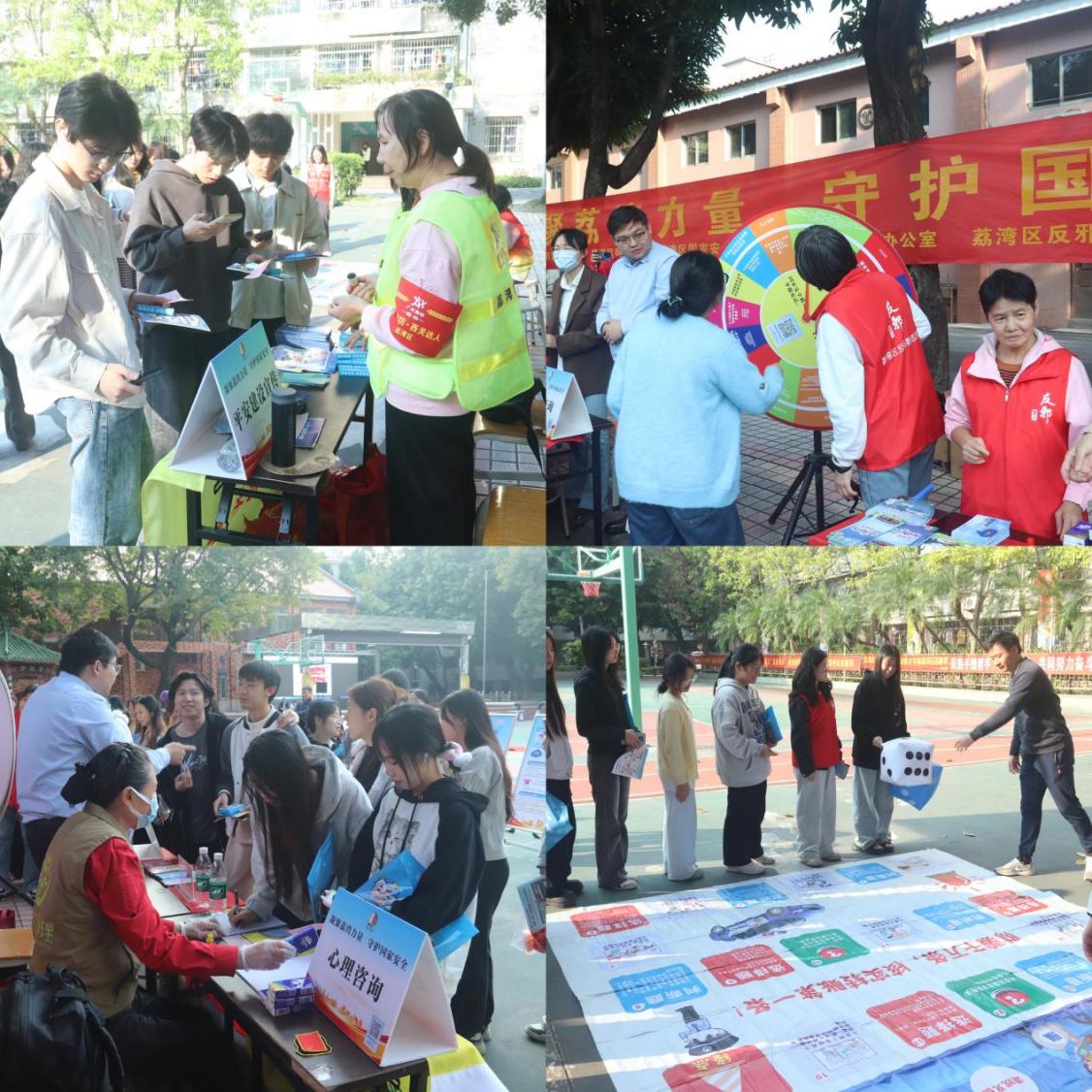 为进一步扩大教育覆盖面与影响力,学校还配合活动在校园内设置国安知识宣传摊位、心理与法律咨询专区,搭配趣味有奖互动游戏,吸引同学们积极参与打卡。这种“理论讲解+实践体验”的模式,打破了传统安全教育的枯燥感,让国家安全理念在轻松氛围中入脑入心,有效提升了学生的安全防范意识与自救互救能力。