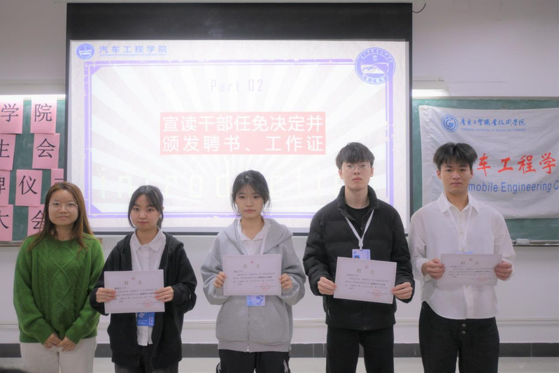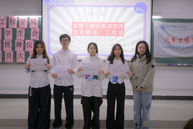 随后,大会宣布结合试用期表现情况,并参照学生会委员考核结果,决定对24电信2班陈佳玲,24新能源2班周树填,24新能源5班赵楚彤等23位同学颁发聘书和工作证。
