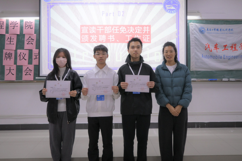 接着,汽车工程学院团委书记桂晶晶为大会致辞。她强调,授牌意味着使命的传承,更代表着沉甸甸的责任。学生会作为连接学院与学生的重要桥梁,要始终坚守服务初心,严格自我要求,在组织活动、落实工作时做到严谨务实、高效协作,以“服务同学、助力学院”为核心,在实践中锤炼能力、在担当里成长进步,同时,希望成员们能以榜样之姿引领身边同学,让学生会成为学院发展中不可或缺的青春力量。