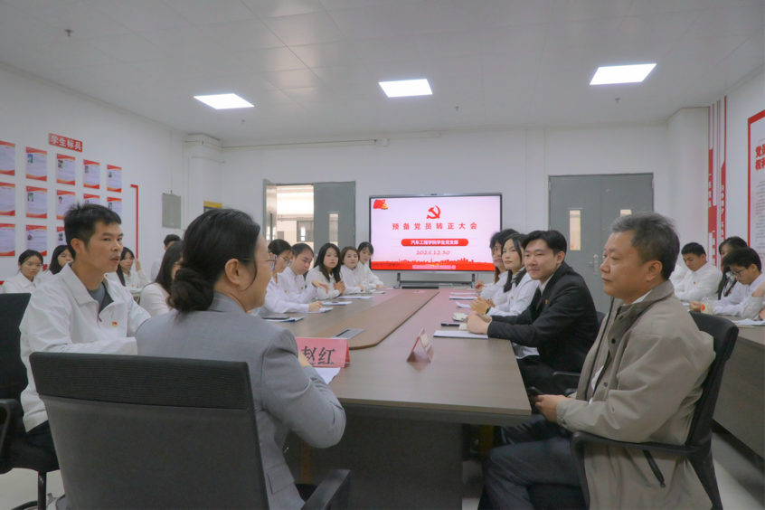 为扎实做好党员发展工作,进一步增强党组织活力,2025年12月30日下午,汽车工程学院学生第二党支部在实训楼205室召开预备党员转正大会,严格按照组织程序对王晓庆等8名同志的转正申请进行了讨论和表决。学校副校长赵红、学院党总支书记朱永平到会指导。党支部书记陈玉华主持会议,支部纪检委员郭朋朋、组织委员吴俊迪、辅导员林诺怡及支部全体学生党员参加会议。