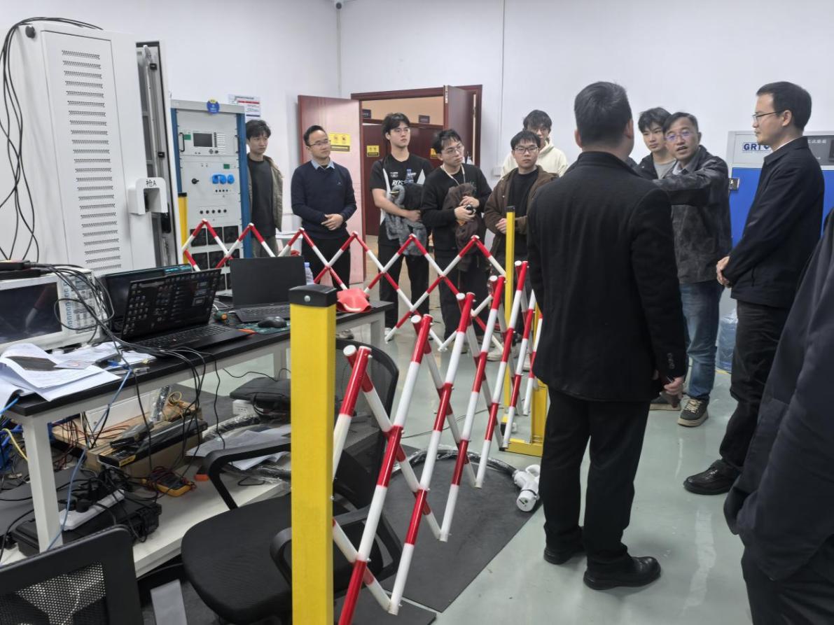 在企业负责人陪同下,师生一行深入检测车间与实验室进行实地参观。在电池实验室,技术人员系统介绍了动力电池及储能设备的安全性能测试流程与标准。师生通过现场观摩,对高端检测设备、严谨的操作规程及行业技术前沿有了直观了解。