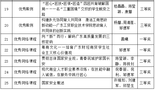 近日,2025年广东高校思想政治工作论文、案例、网络课程推选征集活动评选结果揭晓,我校成果丰硕,共有25个参赛作品斩获省级奖项,其中一等奖6项、二等奖9项、三等奖8项、优秀奖2项,充分彰显了我校思政教育工作的扎实成效。
