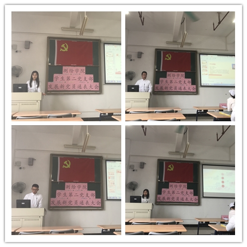 入党介绍人介绍培养教育情况,并表明态度。与会正式党员讨论表决,并进行无记名投票表决。随后,支部书记冯臻佳老师宣读了决议,并进行了总结发言。冯老师首先向今天通表的同志表示祝贺,同时提出要加强党的理论知识学习,并要以党员标准严格要求自己,在学习、工作、实习等各方面充分发挥模范带头作用。