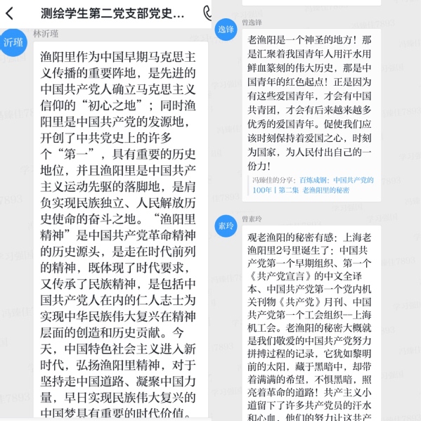 4月8日晚,测绘遥感信息学院学生第二党支部开展“党史微课”系列活动,组织全体党员通过学习强国平台云端学习观看了百集微纪录片《百炼成钢:中国共产党的100年》第二集:老渔阳里的秘密。