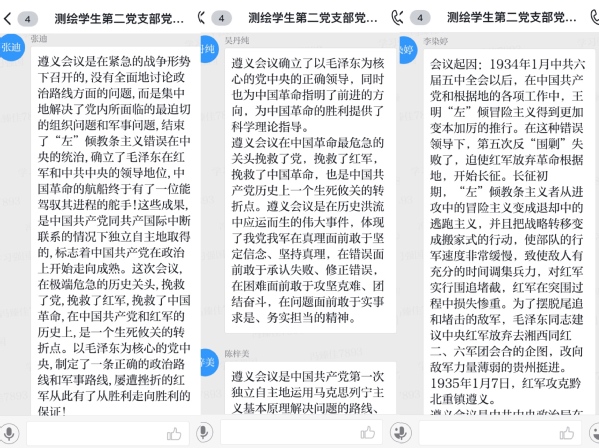 5月25日晚,测绘学院学生第二党支部开展“党史微课”系列活动,组织全体党员通过学习强国平台云端学习观看了百集微纪录片《百炼成钢:中国共产党的100年》第十四集:遵义会议,并进行了交流讨论。本次党课由支部书记冯臻佳老师主持、主讲。