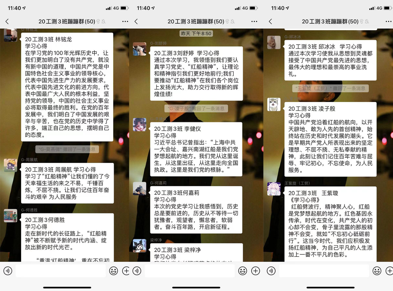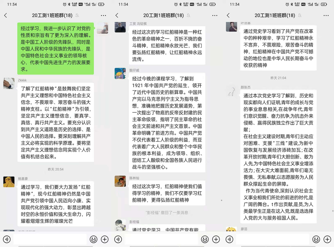 在本次宣讲结束后,2020级工程测量技术1、2、3班由团支书在本班微信群组织开展了讨论,同学们纷纷分享了自己的学习心得。