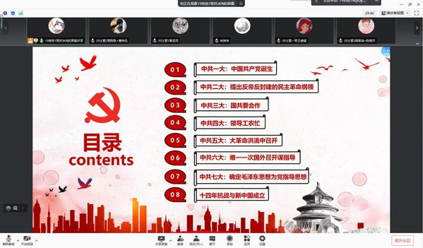 接着,洪冰纯以中国共产党的新民主主义革命时期为题,讲述从中国共产党建立到新中国成立阶段,党的一大到七大的召开背景、重要内容及意义,真切地感受到中国共产党为了求得民族独立和人民解放,从无到有,从弱到强,克服重重困难,取得一个又一个胜利的艰辛而辉煌的历程。激励和引领广大青年学子应牢记初心使命,坚定理想信念,践行党的宗旨,永远保持同人民群众的血肉联系,继续为实现人民对美好生活的向往不懈努力,努力为党和人民争取更大光荣。