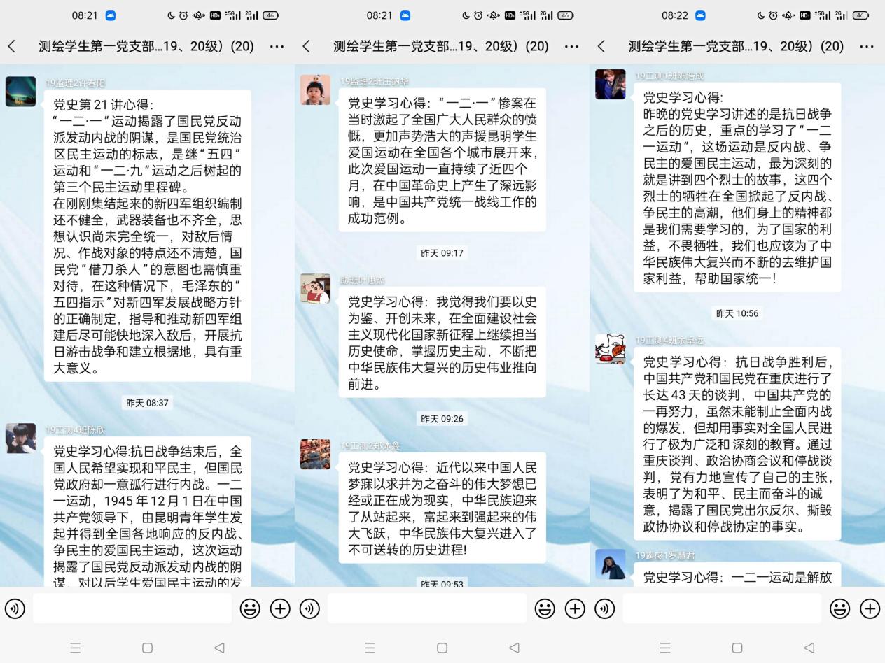 在学习结束后,学生党员在支部“移动微课堂”进行了讨论,支部成员们纷纷对本次的学习内容进行了讨论。