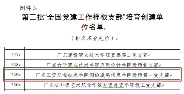 近日,教育部印发通知,公布第三批全国党建工作示范高校、标杆院系、样板支部培育建设单位名单,我校测绘遥感信息学院教师第一党支部入选了“全国党建工作样板支部”培育建设单位。