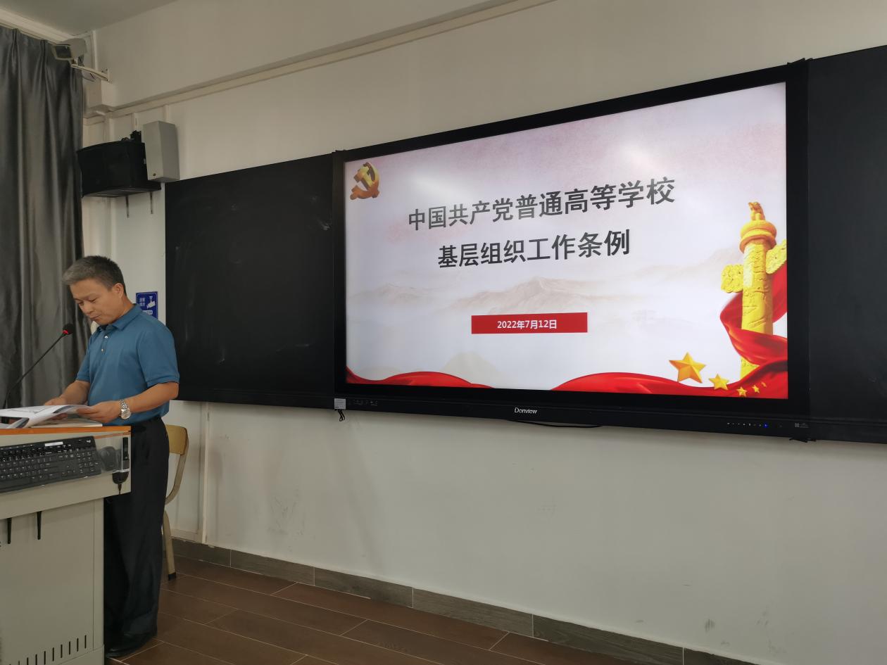 最后,速云中院长就《中国共产党普通高等学校基层组织工作条例》进行了领学。《中国共产党普通高等学校基层组织工作条例》的修订坚持以习近平新时代中国特色社会主义思想为指导,坚持以党章为根本依据,贯彻落实新时代党的建设总要求和新时代党的组织路线,对高校基层党组织工作作出全面规范,体现了近年来高校党建工作理论、实践和制度创新成果,为全面加强新时代高校党的建设提供了基本遵循。要将学习贯彻《中国共产党普通高等学校基层组织工作条例》精神与学习领会习近平总书记关于教育工作的重要论述结合起来,坚持党的领导,加强学校党的建设,全面贯彻党的教育方针,坚持教育为人民服务、为中国共产党治国理政服务、为巩固和发展中国特色社会主义制度服务、为改革开放和社会主义现代化建设服务,坚守为党育人、为国育才的初心使命,培养德智体美劳全面发展的社会主义建设者和接班人。