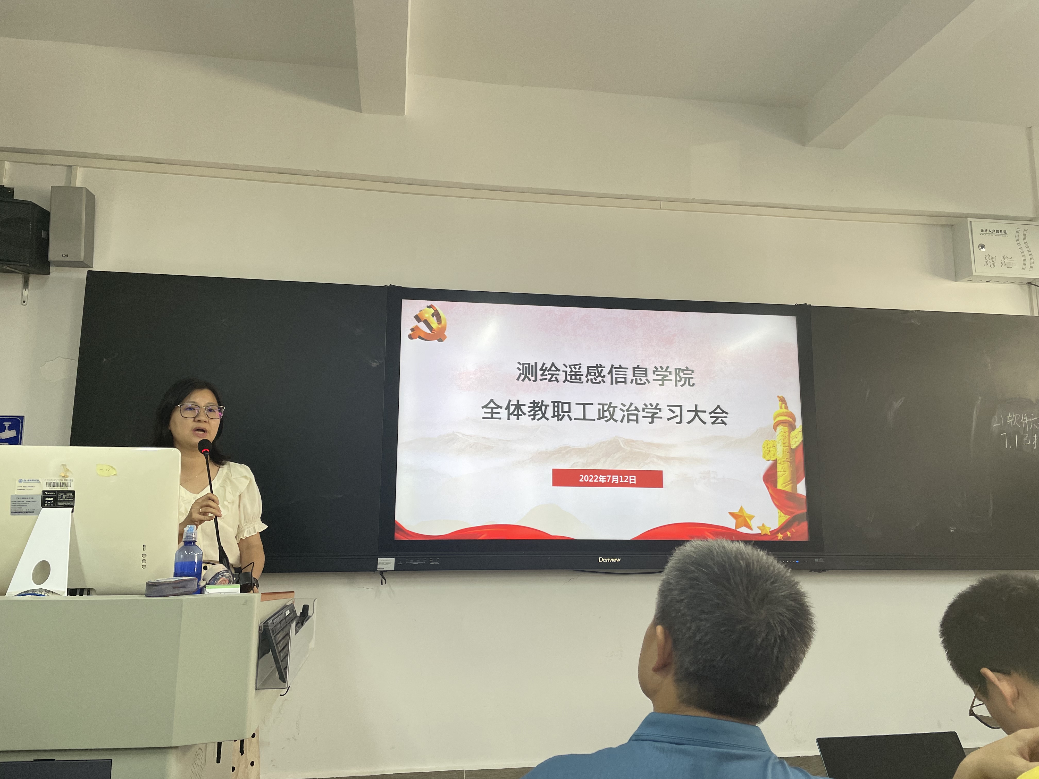 为认真学习贯彻习近平新时代中国特色社会主义思想,深入贯彻落实习近平总书记关于教育的重要论述及党中央、国务院重大决策部署,持续推进政治理论学习常态化和规范化。7月12日,测绘遥感信息学院在天河校区东区教学楼201召开全体教职工政治学习会议,学院党总支书记兼院长速云中主持会议并组织政治学习,学院全体教职工参加会议。