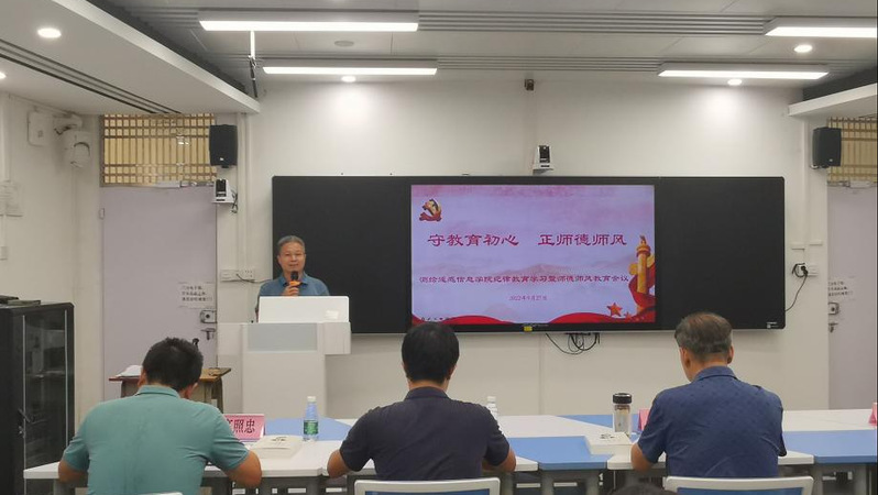 为深入学习《习近平谈治国理政》第四卷,严格纪律教育学习和师德师风建设要求,全面推进“双高计划”专业群建设工作,以实干实绩迎接党的二十大召开,9月27日,测绘遥感信息学院在天河校区西区综合楼205召开以“守教育初心,正师德师风”为主题的全体教职工纪律教育学习暨师德师风教育会议。会议由测绘遥感信息学院党总支书记兼院长速云中主持,学校党委副书记、校长何汉武出席会议并发表重要讲话,学校办公室主任吴浩、学院党总支副书记李元、副院长高照忠以及学院全体教师参加会议。