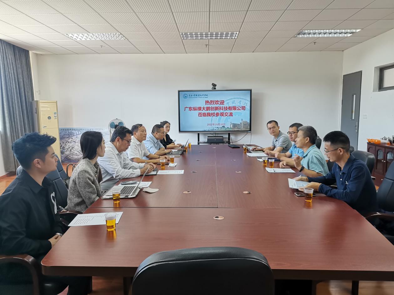 2022年10月10日上午,广东纵横大鹏创新科技有限公司总裁王书贤、执行董事陈义、总监张智勇等一行人莅临我校交流校企合作事宜,会议由测绘学院总党支部书记速云中主持。
