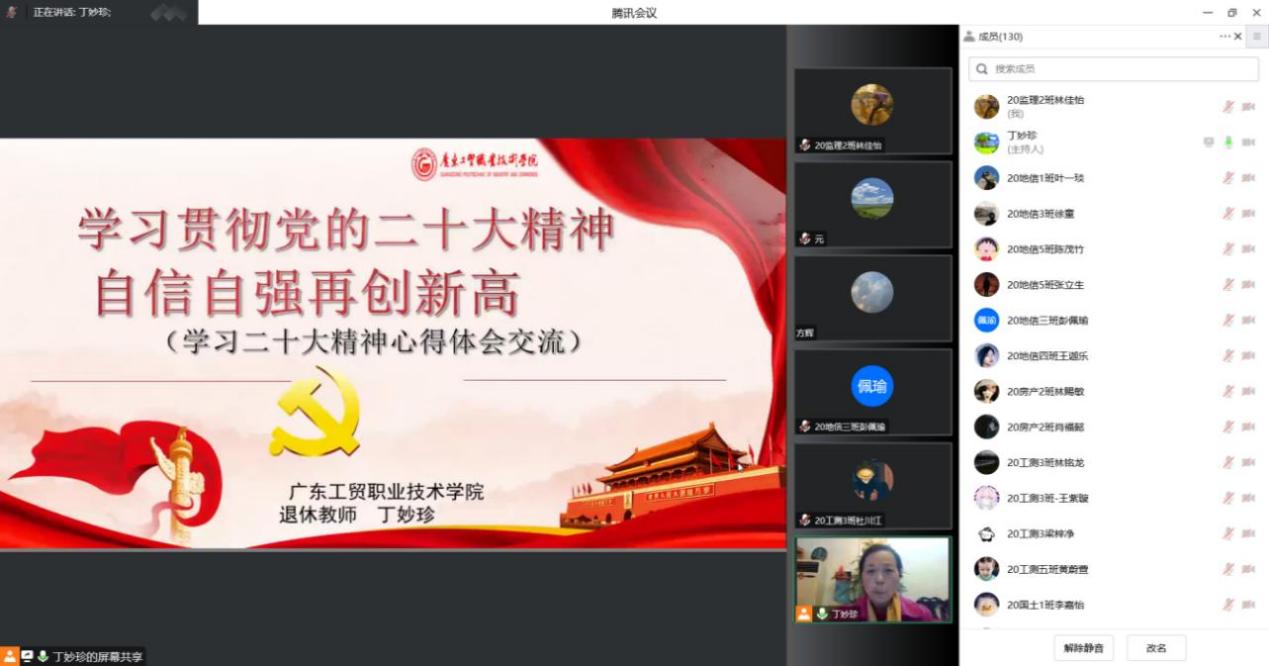 其中,青年教师党员吴萍昊表示丁教授讲解的“坚持自信自强”、“坚持胸怀天下”两个要义给自己留下了深刻印象,要将党的二十大精神融入日常工作中,用党的二十大精神指导学校“双高”建设实践。