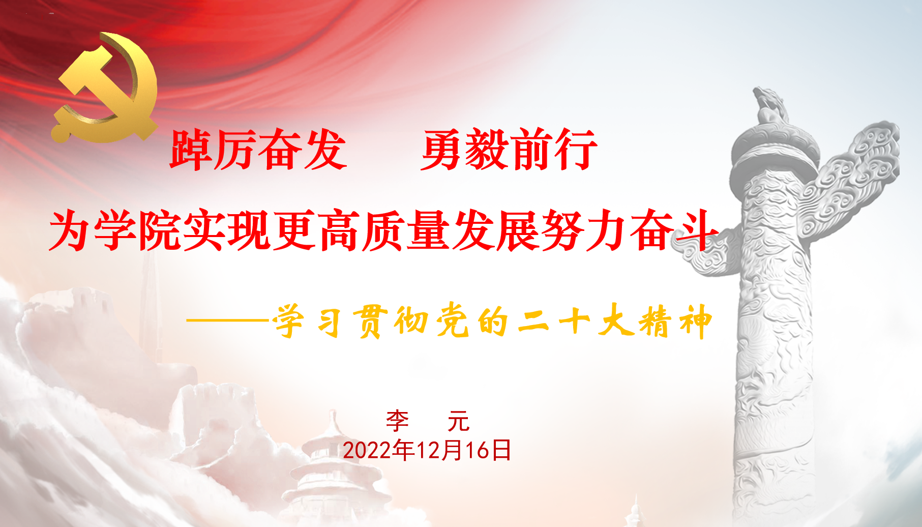 为推动党的二十大精神在青年群体中走深走实,12月16日,测绘遥感信息学院党总支副书记李元以“踔厉奋发,勇毅前行,为学院实现更高质量发展努力奋斗”为题,为学院师生作党的二十大精神宣讲报告。测绘遥感信息学院部分师生代表参加,宣讲会采取线上会议方式进行。