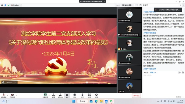 为进一步推进学校教育事业高质量发展,不断增强学生党员干事创业的责任感和使命感,1月4日晚上,测绘遥感信息学院学生第二党支部通过腾讯会议线上开展了《关于深化现代职业教育体系建设改革的意见》的专题学习研讨会议。