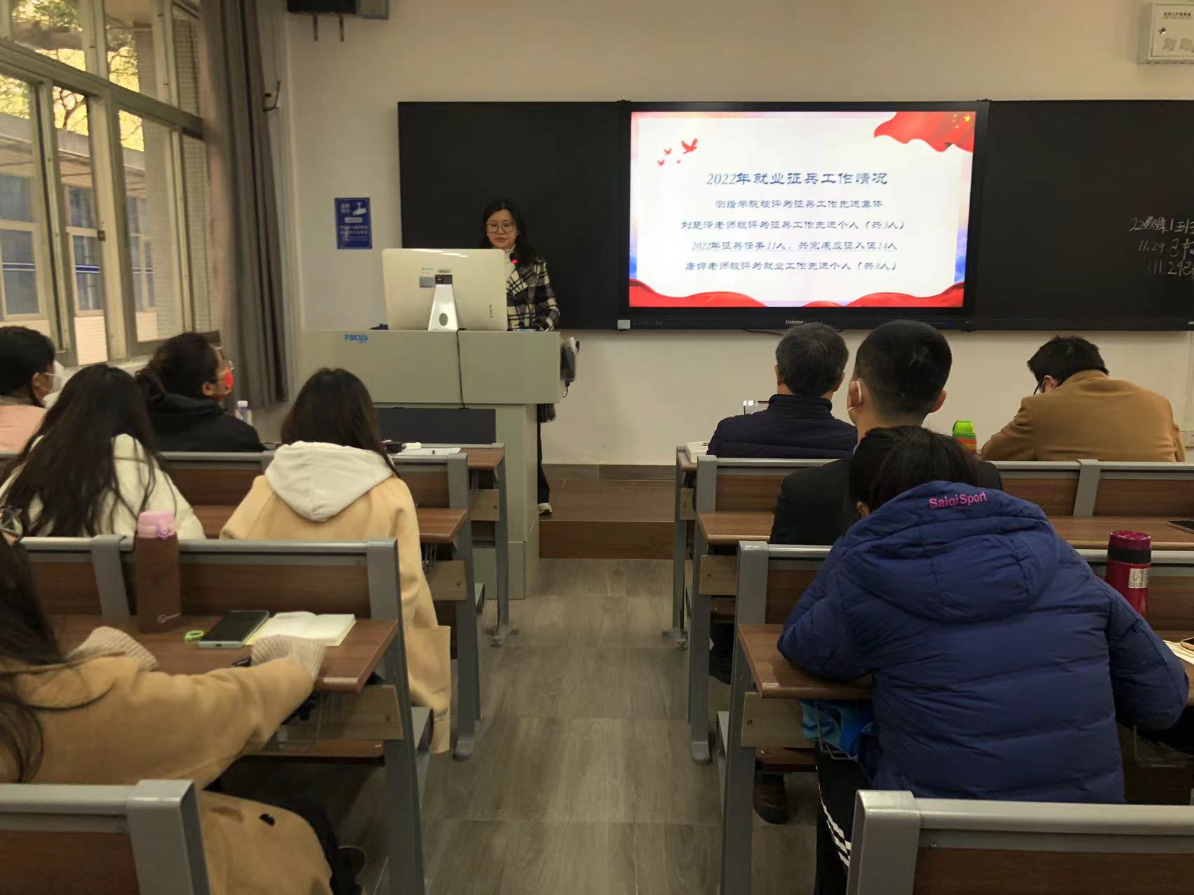 接着,副院长高照忠通报了教学、科研、实训、创新创业等相关工作,对学生实习成绩的录入、课程案例的撰写、教师教学能力竞赛的准备、学生技能竞赛的指导以及高职扩招工作进行了详细安排。党总支副书记李元通报了学生管理、疫情防控等相关工作,同时总结了2022年度就业征兵工作情况,启动部署了2023年就业征兵工作。
