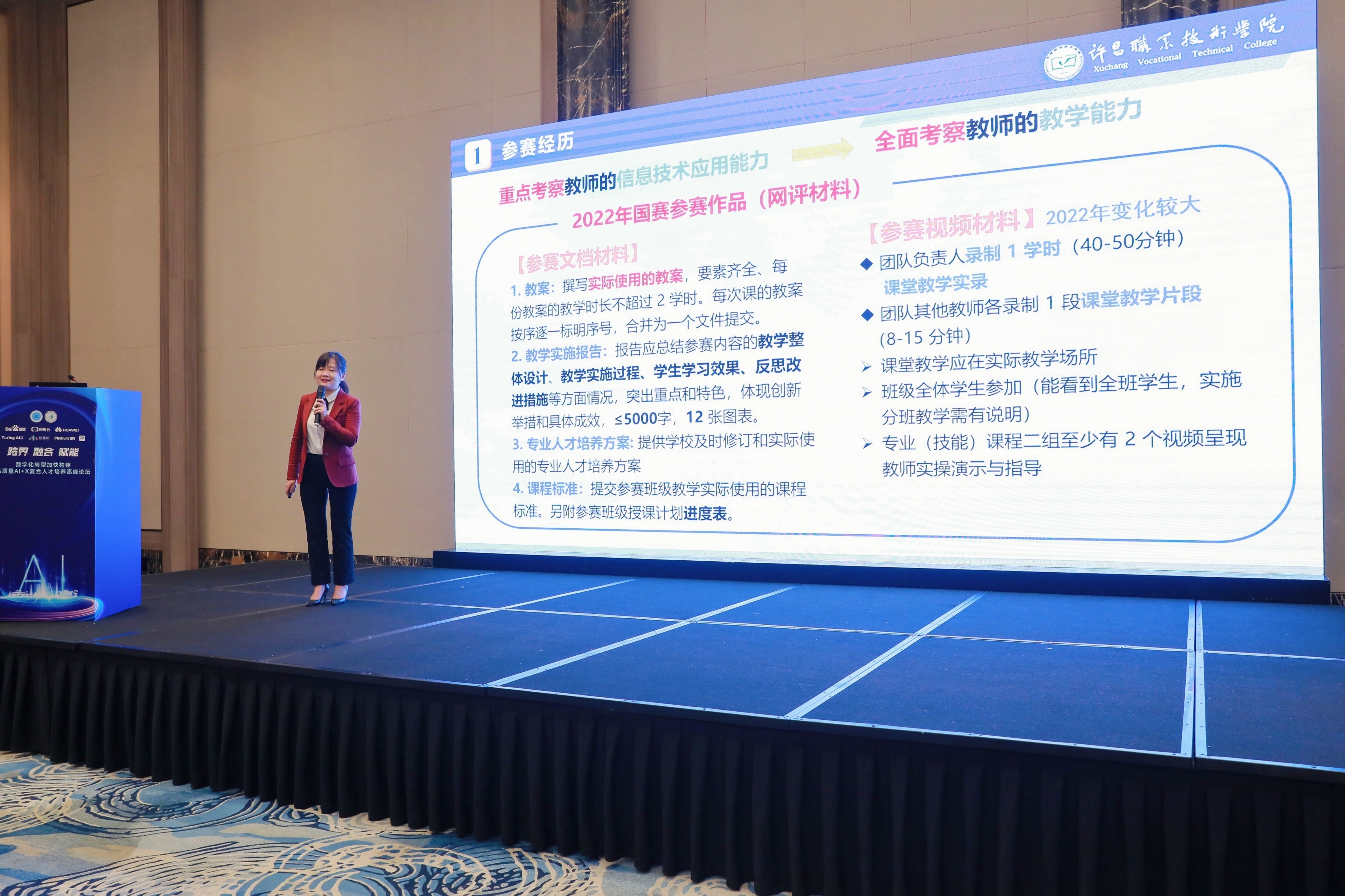 第三主题报告为数智赋能、融合创新:提升教师数字化教学能力,邀请许昌职业技术学院、获2022年全国职业院校技能大赛教学能力比赛高职公共基础课程组一等奖的赵景老师,黑龙江农业经济职业学院国家课程思政教学名师尚明娟老师等5位专家嘉宾分享有关参加教学能力比赛的经验、选题思路、备赛建议,国家级精品在线课程建设与应用等的专题报告。