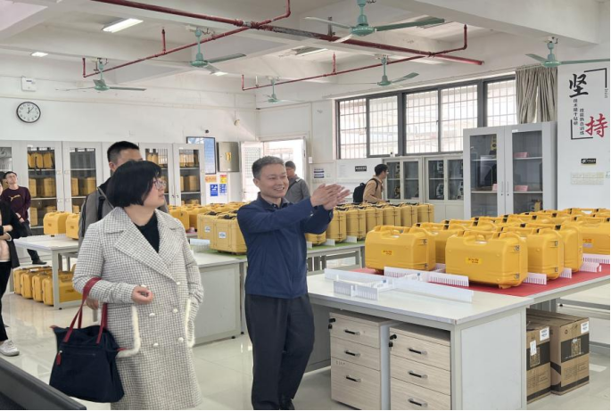 会后,速云中带领来访交流考察人员来到行知楼参观实训室和校企共建的实训室以及进行各实训室的讲解。