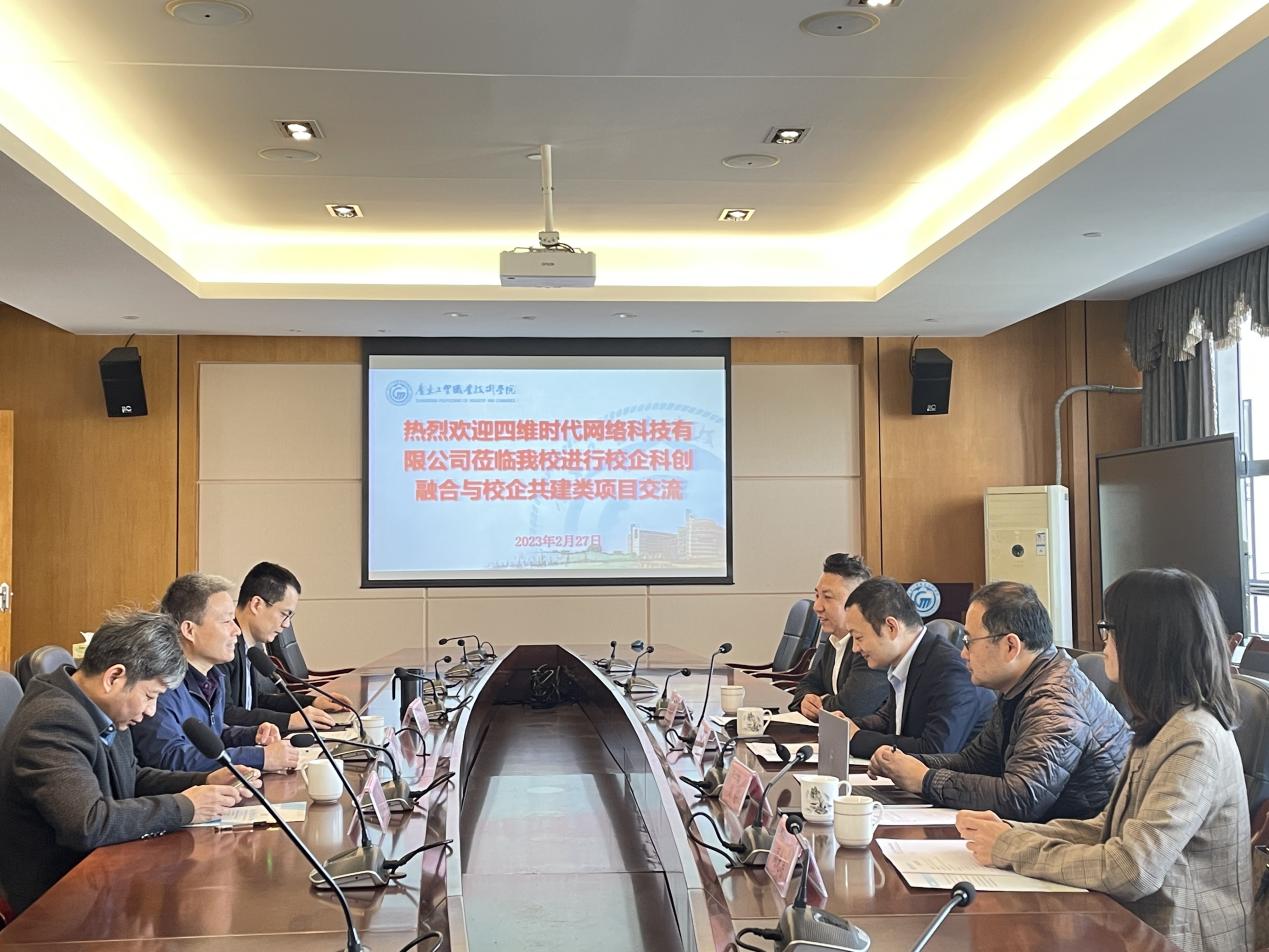 随后,盛建民代表企业介绍了四维时代网络科技有限公司的基本情况,对我院高度重视校企合作深表感谢,还指出四维时代网络科技有限公司一直在探索与各院校在人才培养方面的合作模式,希望通过与我院在科研项目、产品研发、联合共建实训室以及预计投入到我院的三维全景相机、配套课程、职业资格从业VR实训建模师考证的培训考点等方面的合作来加强行业资源的整合、多元信息的共享、打通项目对接的渠道、实现产教协同育人的新机制。