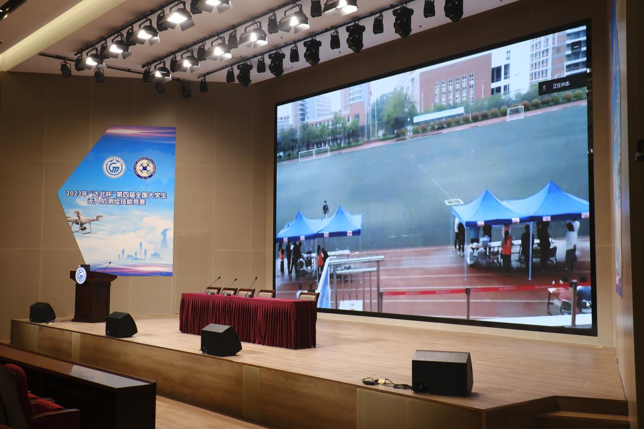 为更好地让领队、指导老师了解比赛现场情况,实时反馈选手表现,实现公平、公正、公开。本次竞赛在学校白云校区图书信息楼报告厅设立实况转播区,对两个赛场进行实况转播,同步赛事画面。