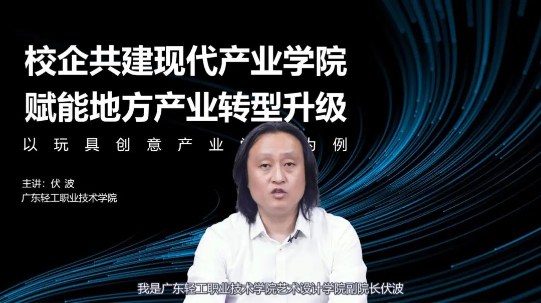 广东轻工职业技术学院艺术设计学院副院长伏波副教授从赋能汕头玩具产业向智能化、高端化、品牌化转型入手,分享了广东轻工职业技术学院、汕头市林百欣科学技术中等专业学校、澄海科创中心等多方共建玩具创意产业学院,构建“工学商一体化”项目制课程体系,采用工作场景下的沉浸式教学,实现学生不出产业学院,也能完成“学习-实践-顶岗-就业”全过程的经验做法。