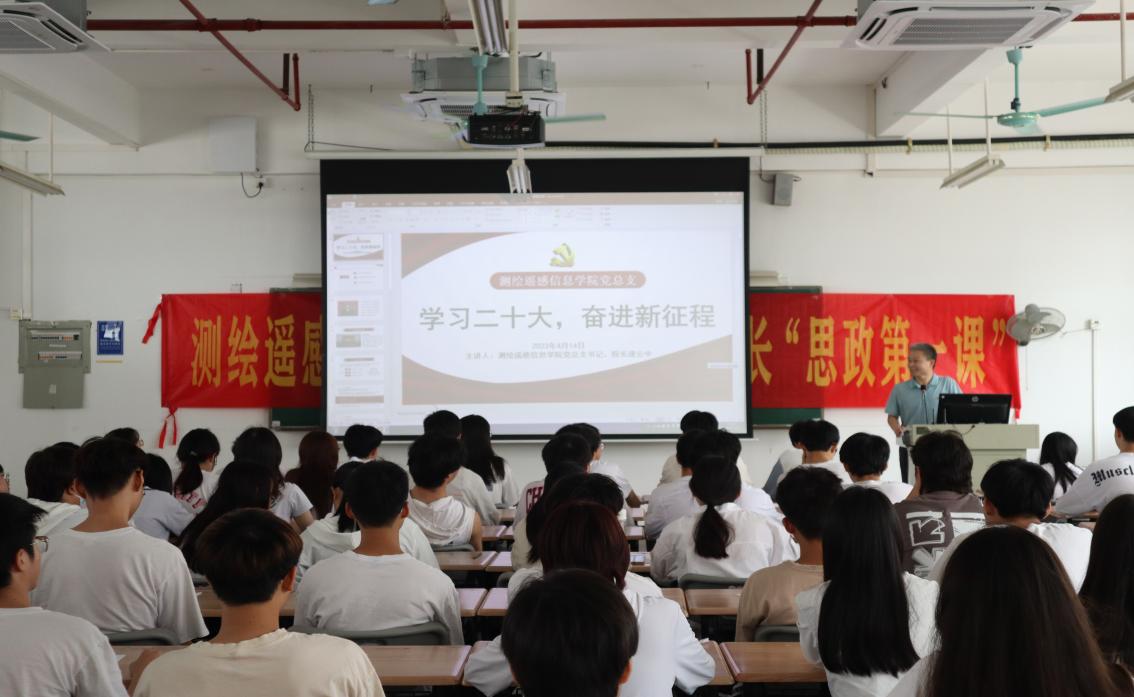 为教育引导青年学生深入学习贯彻党的二十大精神,深刻领会党的二十大精神的丰富内涵、核心要义和实践要求,切实把学生的思想和行动统一到党的二十大精神上来。4月14日下午,测绘遥感信息学院党总支书记、院长速云中在白云校区明德楼2区504课室为2022级三个班讲授了主题为《学习二十大,奋进新征程》的思想政治理论第一课。