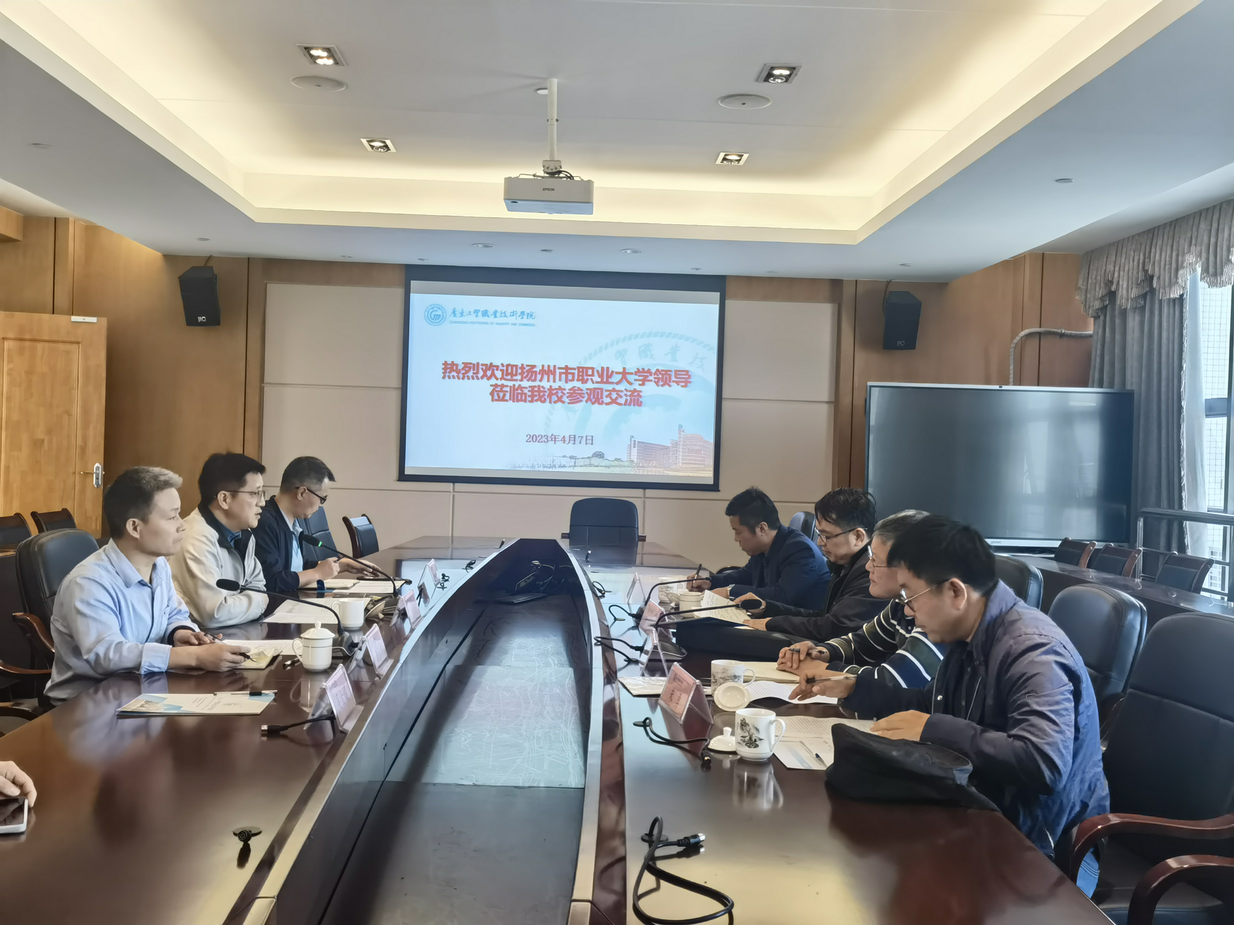 4月7日,扬州市职业大学党委副书记黄华明,扬州市职业大学资源环境学院副院长刘学方、测绘系主任王玉龙、实验室主任朱勇一行4人莅临我校调研交流,我校党委委员、副校长刘贻新,测绘遥感信息学院党总支书记、院长速云中进行了接待并出席了此次座谈会。