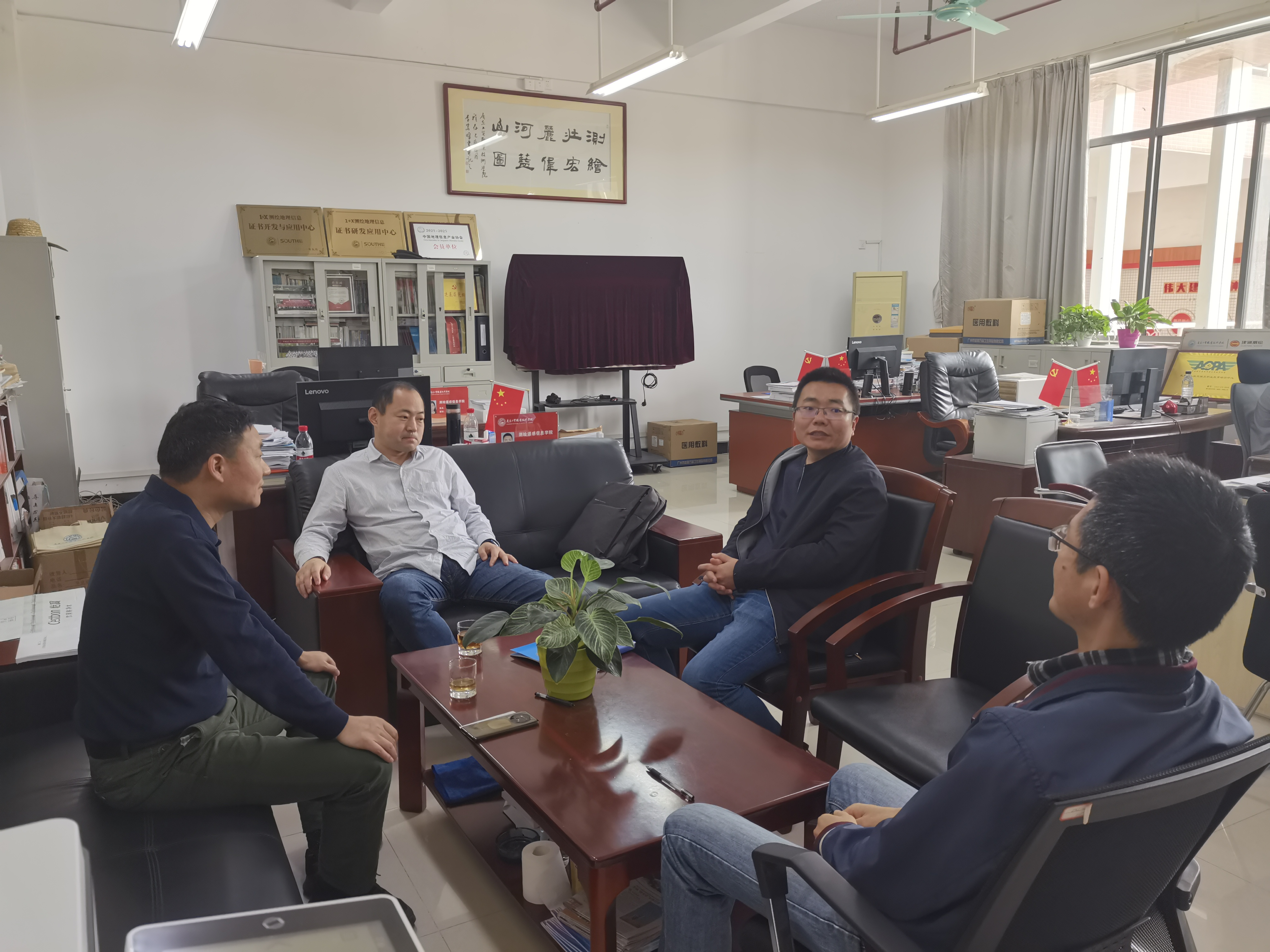 2023年4月27日上午,广东省地质测绘院广州分院院长焦道振、副院长唐升峰到我校测绘遥感信息学院开展交流,测绘遥感信息学院副院长高照忠、地理信息系主任黄铁兰进行了接待。