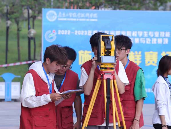 本次大赛共有来自全省21所高职院校的参赛队伍参加,赛程包括在学校运动场进行的“1:500数字测图”、在行知楼通道进行的“二等水准测量”、在明德广场进行的“施工放样”。本赛项主要考察学生对测绘地理空间信息数据采集与处理的实践能力、基础知识的掌握水平和测绘精神的涵养深度。