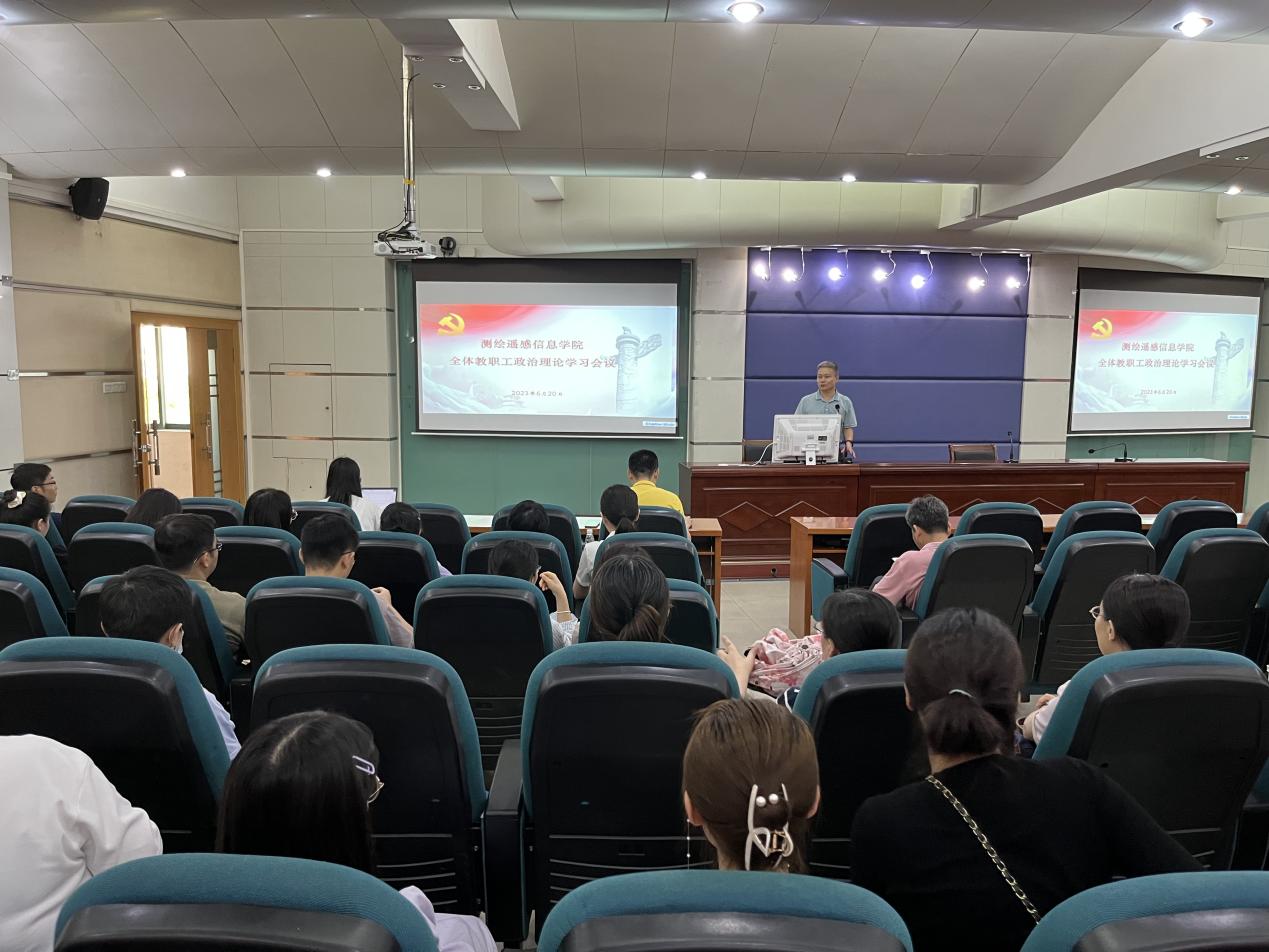 为深入开展学习贯彻习近平新时代中国特色社会主义思想主题教育,进一步强化理论学习,营造“读原著、学原文、悟原理”的学习氛围,推动职业教育教师能力素质的全面提升,6月20日下午,测绘遥感信息学院在天河校区西区报告厅召开全体教职工政治理论学习会议。会议由测绘遥感信息学院党总支书记、院长速云中主持,全体教职工参加。