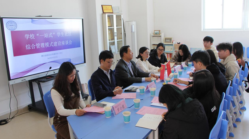 会议伊始,大家首先对何汉武、吴浩的到来表示了热烈欢迎。随后,何汉武对“一站式”学生社区的概念进行了详细介绍。他指出,“一站式”学生社区是一个集学生学习、生活、娱乐于一体的大平台,是以学生共同生活区域为基础,以服务学生在课堂学习之外的成长成才为目标,以共同价值观念为联结的学生教育生活成长共同体,搭建“一站式”学生社区的目的在于让服务零距离,让学生少跑腿。