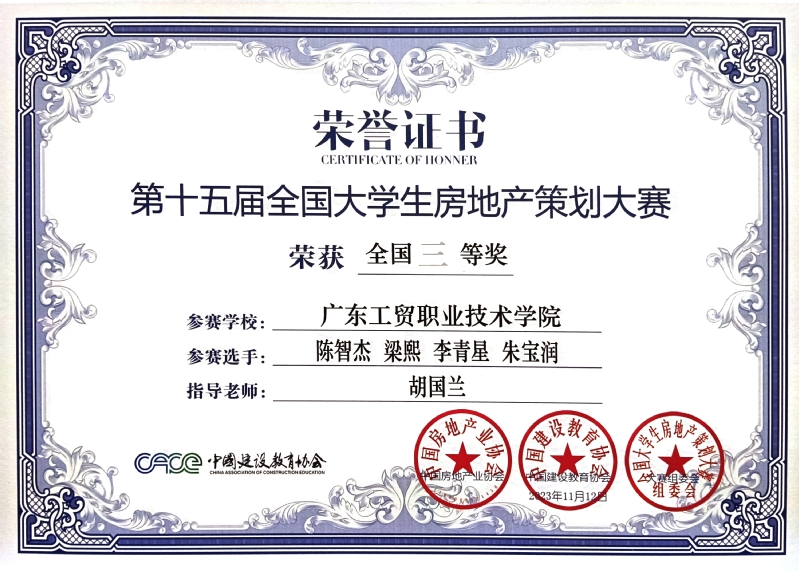 2023年11月11-12日,由中国建设教育协会、中国房地产业协会、华侨大学等承办2023年第十五届全国大学生房地产策划大赛总决赛在厦门如期举行。我校学子喜获全国三等奖的好成绩。
