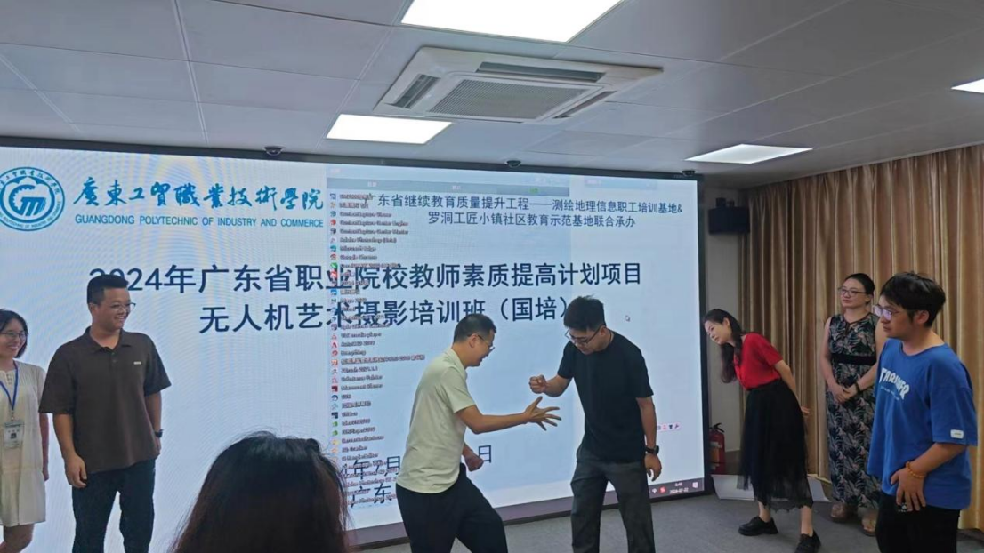 7月22日,2024年广东省职业院校教师素质提高计划项目无人机艺术摄影培训班(国培)迎来了第三天的课程。正式上课前,第一小组精心准备了“猜拳过河”课前小游戏,在学员李芳娟老师的主持下,学员们积极参与,气氛热烈,在一片欢声笑语中开始了今天的课堂。