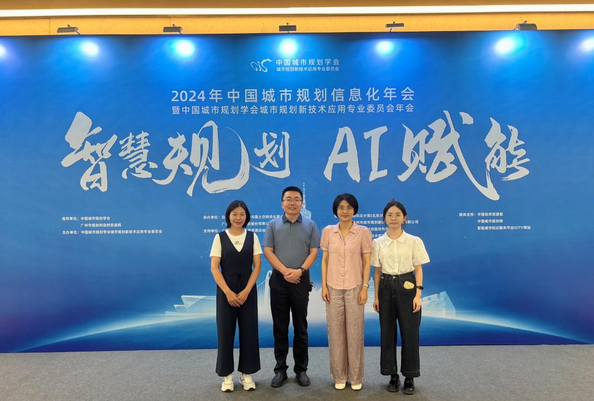 为进一步落实学校国家“双高计划”,推进测绘遥感信息学院双高测绘地理信息技术专业群和、教育部第三批教师创新团队和国土空间规划与测绘专业的建设,测绘遥感信息学院学院副院长高照忠教授带领团队成员陈利燕教授、建设工程与管理系陈一主任、专任老师胡国兰副院长,高照忠和系主任陈一组织学院教师参加此次年会参加2024年7月25-26日在广东省广州市白云国际会议中心召开的第十九届“中国城市规划信息化年会”。本次年会主题为“智慧规划• AI赋能”,主要包括:AI 与智慧规划的新技术及应用场景、国土空间规划实施监测网络关键技术及应用;国土空间基础信息平台关键技术及应用、详细规划与专项规划的数字化管理、国土空间信息模型( TIM )与数据治理、国土空间规划体检评估与城市更新、智慧城市与数字孪生关键技术及应用等内容。