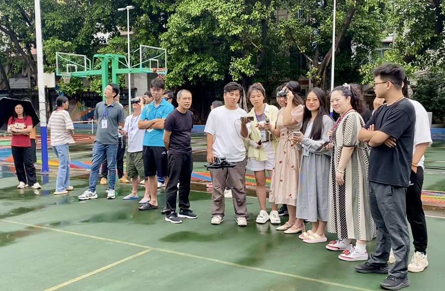 下午,理论与实践相结合的教学达到了高潮。在叶永烽老师的带领下来到操场,学员们亲身体验穿越机的飞行乐趣。学员们分成小组,在叶永烽老师的指导下,亲手操控穿越机,学员们不仅加深了对穿越机性能的理解,还激发了他们对无人机摄影的热爱。学员们积极参与了课程中的各项活动,并在实际操作中获得了宝贵的经验。