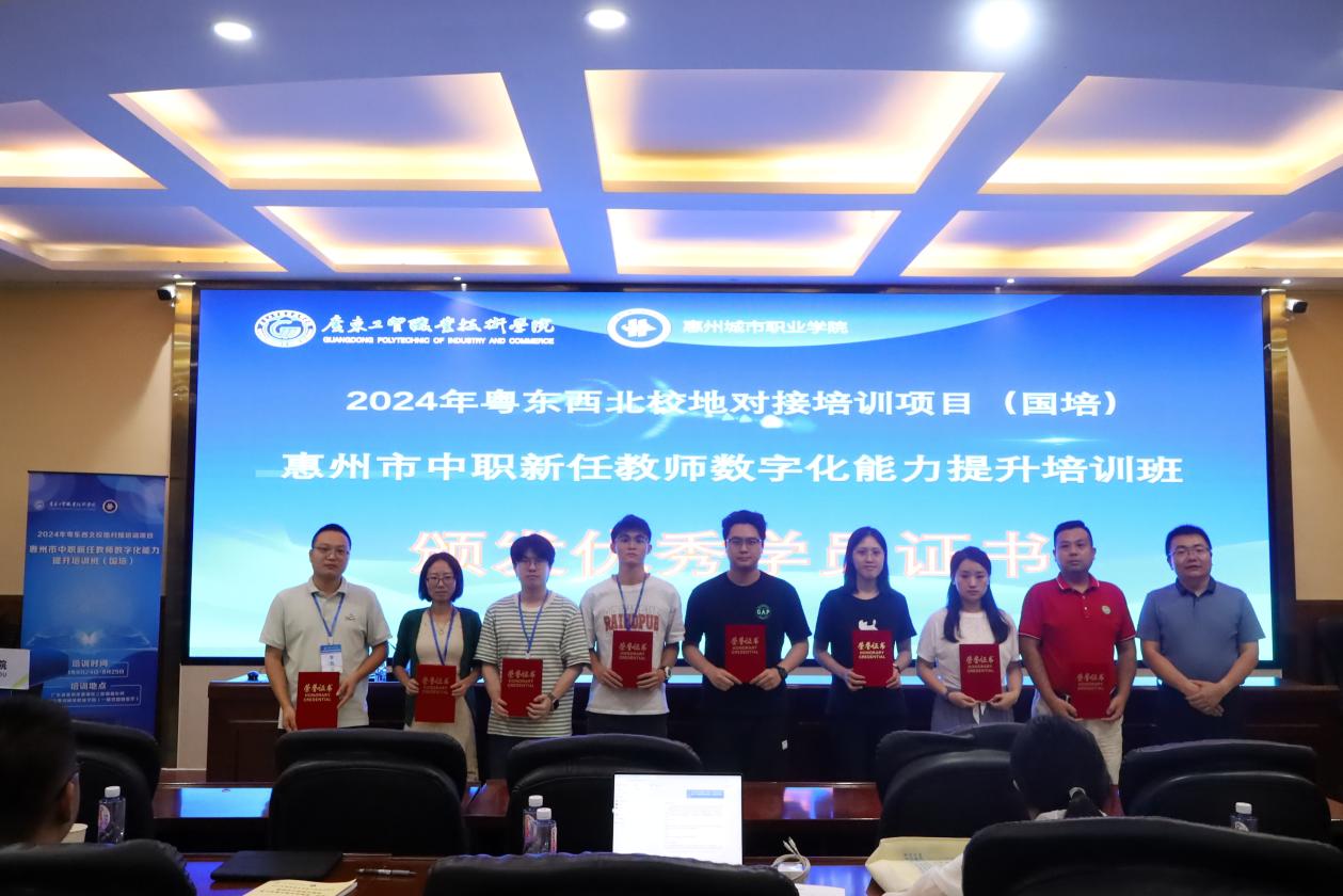 8月29日上午,2024年粤东西北校地对接培训项目——惠州市中职新任教师数字化能力提升培训班(国培)结业仪式在惠州城市职业学院举行。本次国培项目负责人、我校测绘遥感信息学院副院长高照忠,项目工作组成员吴萍昊、杨玲玲以及来自惠州市各职业院校的参训学员共同参加了结业仪式。仪式由国培班班主任吴金媚主持。