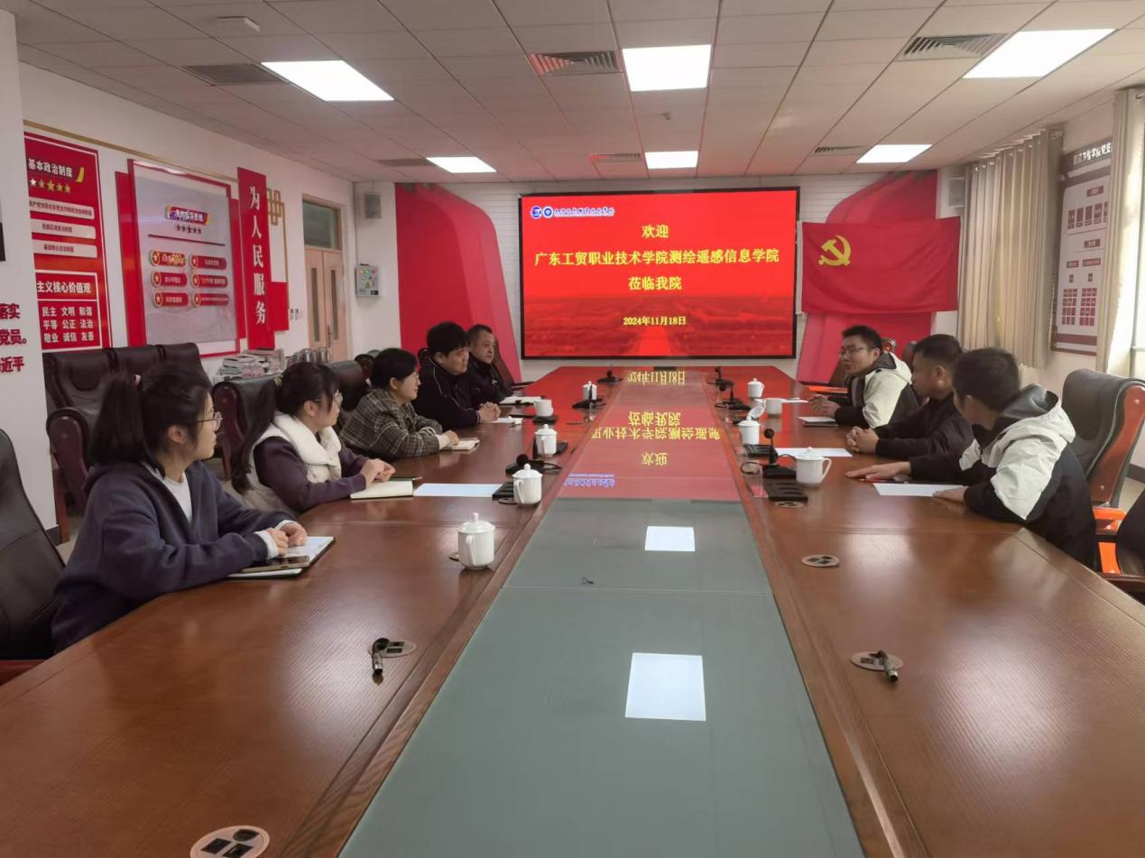 2024年11月18日,测绘遥感信息学院院长高照忠,学工办主任陈君浩,测绘工程系副主任杜向锋,地理信息系教师王战一行到天津现代职业技术学院智能工程学院交流调研。智能工程学院党支部书记、院长岳鹍,无人机应用教研室主任宫道等接待了测绘学院一行。