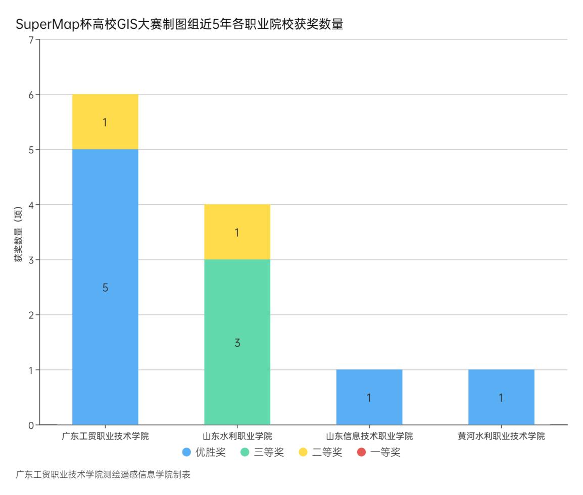 图2 SuperMap杯高校GIS大赛制图组近5年各职业院校获奖数量
