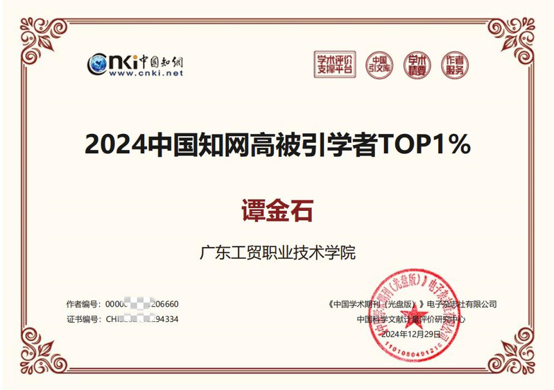 中国知网是我国最权威的数据引文检索文库。“2024中国知网高被引学者 TOP1%”遴选,首先基于中国知网收录的10年(2014-2023)国内学术成果计算每位学者的单篇论文引证标准化指数(PCSI),全国初选出约335万名作者;然后在上述学者的前1%中,进一步筛选出至少发表5篇PCSI指数大于1.65的论文的作者。因此,该名单入选者体现出全国领先的学术科研能力。