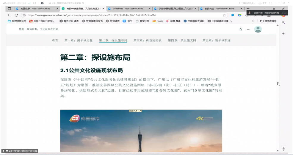 本次比赛共有4组队伍报名参赛,各团队基于易智瑞GeoScene Online平台,以地图+各种图表数据形式的在线地图故事讲述科研成果、社会调查或者学术论文,比赛分为小组作品汇报和专家评价两部分,旨在提升学生的地理信息系统应用能力与创新思维,同时检验学生GIS技术应用与空间叙事能力。