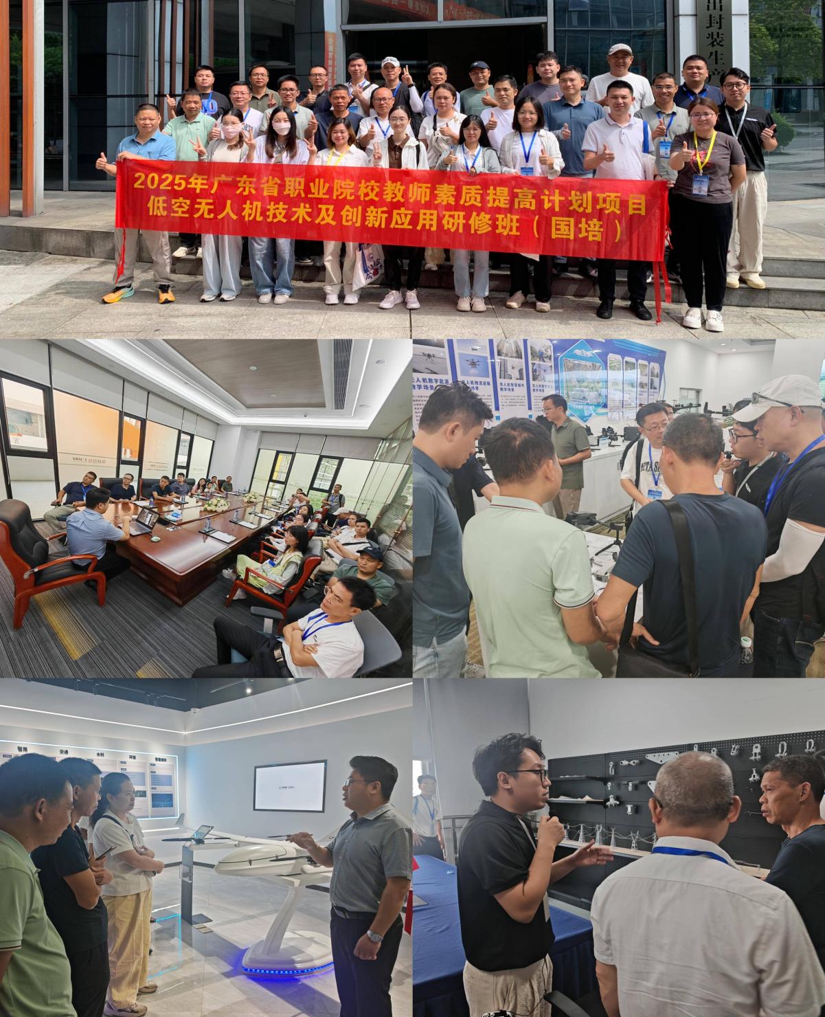 为深化校企融合发展,研修班还安排了实地考察环节。8月1日,研修班学员们前往佛山能飞航空科技发展有限公司、广东纵横大鹏创新科技有限公司深入了解无人机设计研发、实战应用等前沿发展,亲身体验前沿技术在现实场景中的应用,进一步巩固了理论知识,拓宽了视野,为未来的教学实践提供宝贵经验。学员们纷纷表示,此次研修不仅提升了专业技能,更激发了他们对低空无人机产业的浓厚兴趣。