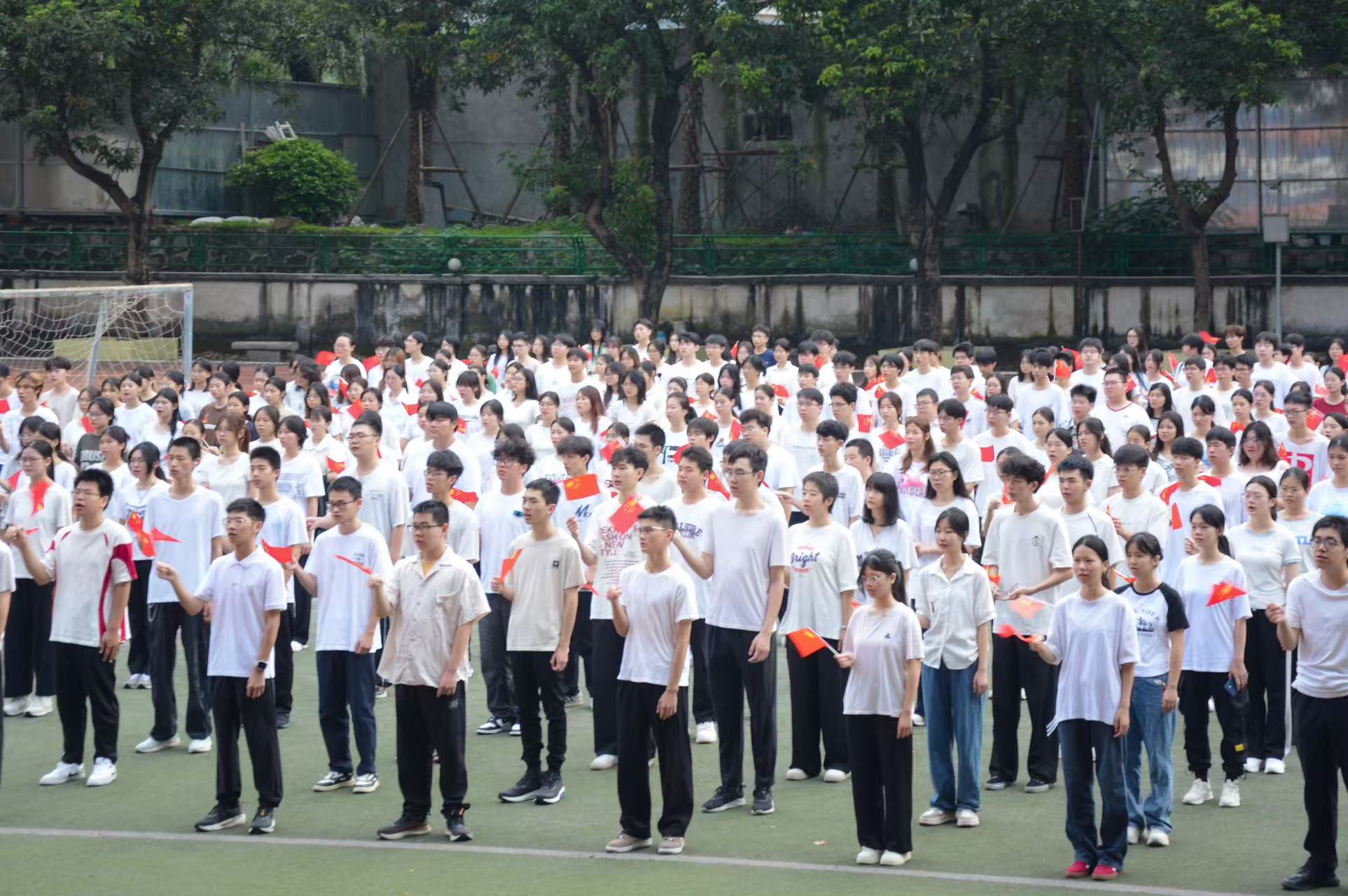 各校区师生挥舞小国旗,齐声高歌《歌唱祖国》