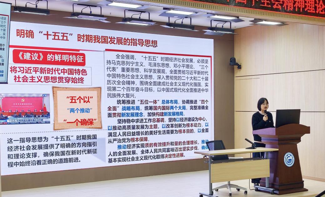 为深入学习贯彻党的二十届四中全会精神,引导广大师生把思想和行动统一到党中央“十五五”发展的战略部署上来,11月27日下午,测绘遥感信息学院在图书馆2-508报告厅组织开展了以“测天地经纬 绘美丽中国”为主题的党的二十届四中全会精神宣讲会。本次宣讲会由学院优秀辅导员、学生第一党支部书记王瑞主讲,2025级工程测量技术专业80余名学生参加。