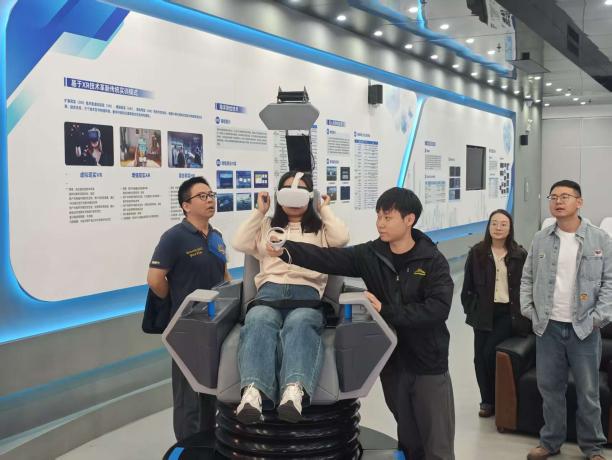 最后,余灏哲一行实地参观了学院测绘技术基础训练实训室、测绘新技术训练实训室,地形、地貌与无人机航测模拟实训室以及测绘地理信息技术专业虚拟仿真实训中心等场所,并通过数字化互动及实操演示,深入了解和体验了我院丰富的实训资源。