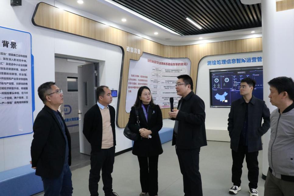 首先,来访人员在高照忠、杨忞婧等人的陪同下,参观了测绘地理信息技术职业教育示范性虚拟仿真实训基地、工信部校企协同就业创业创新示范实践基地等实训室。参观过程中,双方就实训室建设和实训教学经验进行了深入探讨交流。赖彩霞等对我校实训室建设及实践教学成效给予了高度评价。