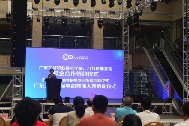 为不断完善我校创新创业教育体系,深化产教融化,加强校企合作,立足粤港澳大湾区,提升服务当地产业能力。2021年5月18日,我校与广州八方盛世投资控股有限公司在八方盛世电商直播基地举行了校企合作签约仪式。活动中,我校同时举行了广东工贸首届电商直播大赛启动仪式和第二期创新创业委员训练营结营仪式。
