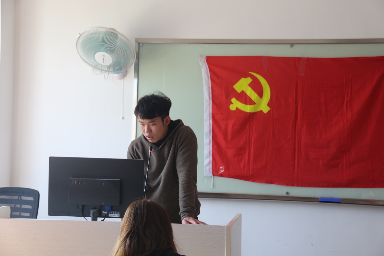 会议现场 其次,一年来,在各挂钩党员和党章学习小组的积极配合下,我院党章学习活动氛围良好,挂钩党员以PPT内容讲解与视频动画相结合的方式,结合自身经历,为入党积极分子开展了一次次生动形象的党章学习,也取得了较好的反响,同时丰富了入党积极分子的政治素养,更加坚定了他们向党组织靠拢的决心。对此,特为在这一年中积极开展党章学习的党章学习小组及其挂钩党员提出表扬,他们分别是:17电信2班党章学习小组、17汽电2班党章学习小组、17电信4班党章学习小组、18汽电2班党章学习小组、18电信3班党章学习小组和18新能源1班党章学习小组;挂钩党员蔡俊鹏、苏婕姗、黄凯祺、李梓立、林泽轩和黄绍智。